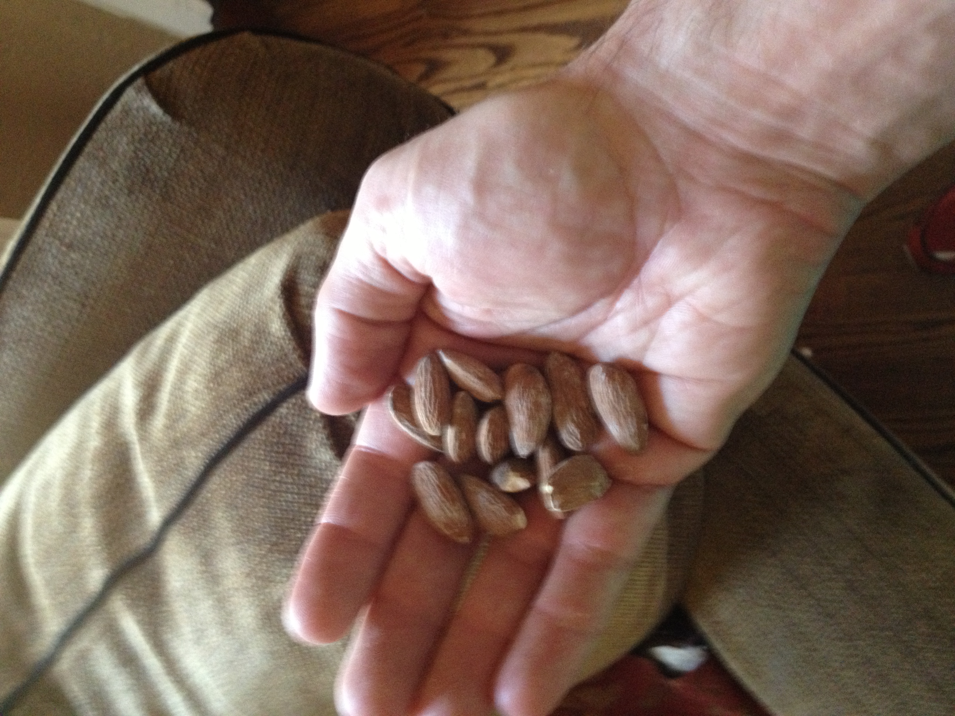 04 06 after 2 pmAfter returning home, I must admit that I grabbed a handful of almonds on the way up to bed.  As you know, I rarely eat after my evening meal.  But, if you are going to feel like you have to throw something into the old belly, please have it be 7 or 8 Raw Almonds……not a half dozen of your favorite, salty, glycemic spiking chips!