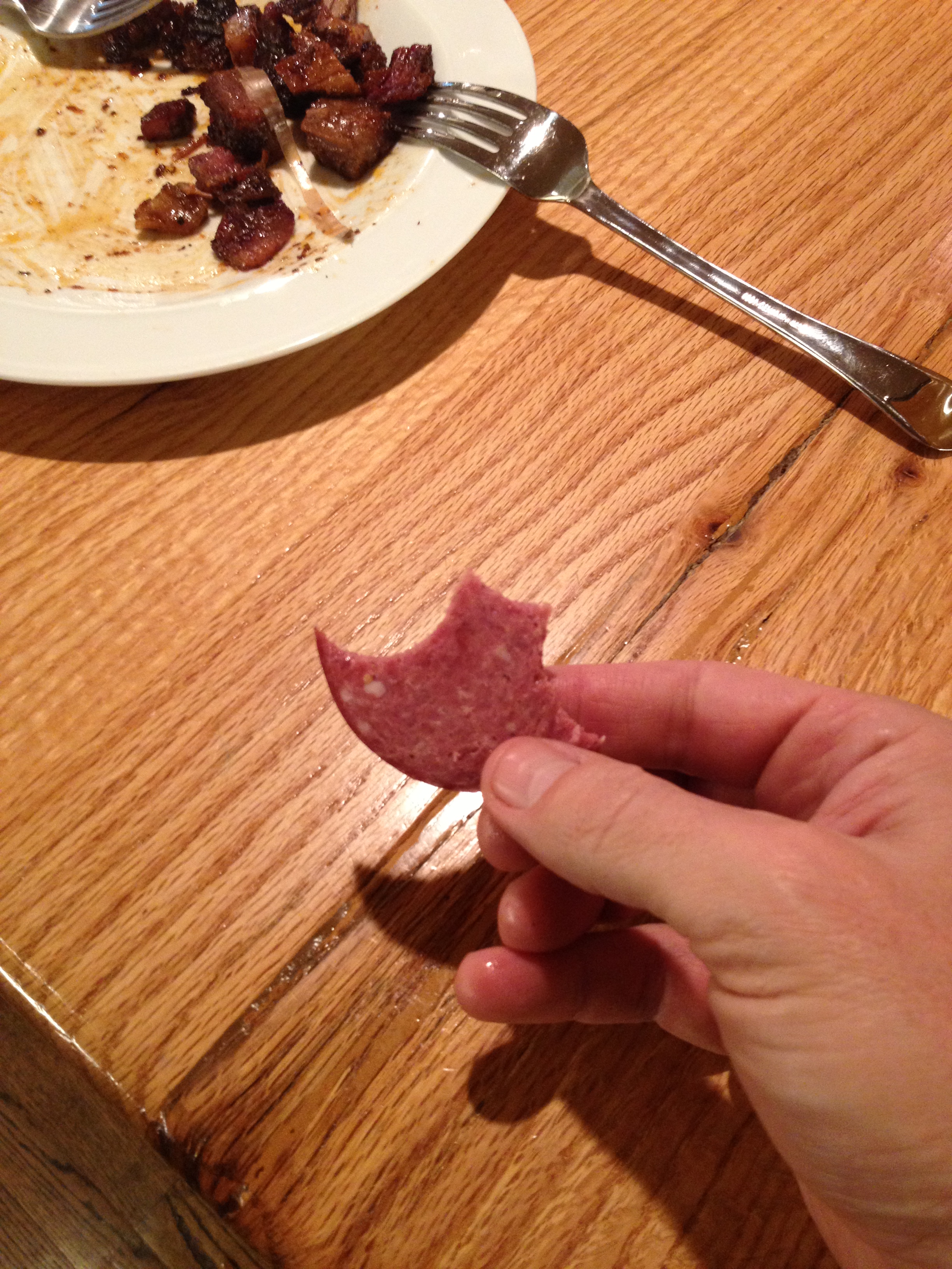 were eating before reading my blog. But, still. Until the belly is a bit flatter……basically like mine or better……let’s skip the burnt ends too. To finish dinner off, I had a bite of Wild Venison Summer Sausage. Mmmmmm good.