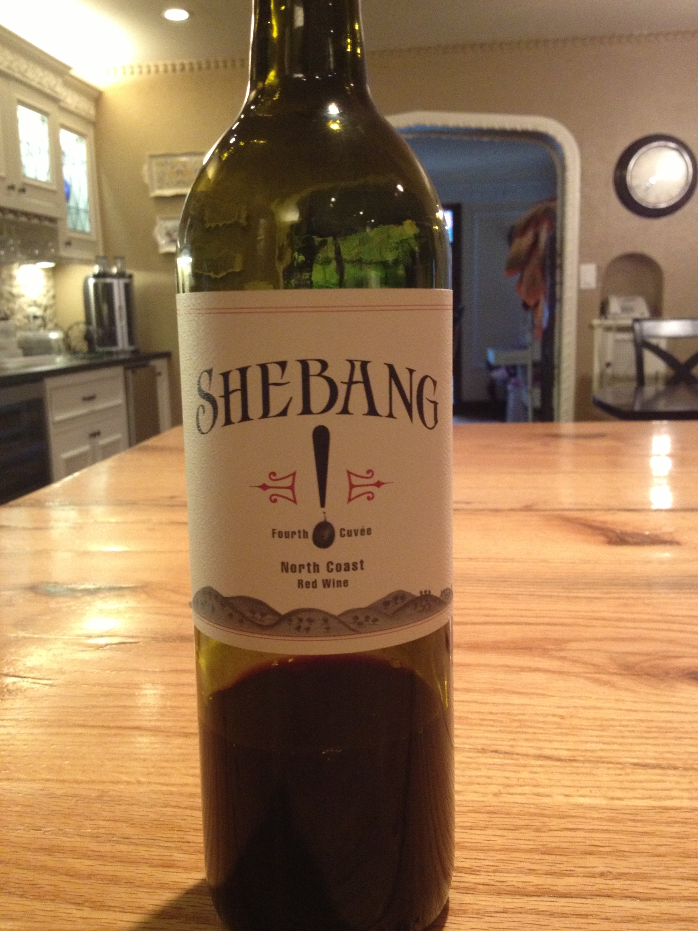 “Shebang”. Google it if you must. But, do not make the mistake of buying a case like I did a couple of years ago. It is the most obnoxious and loud red made in Northern California. And, the only thing on Earth with which it could be successfully paired would be the BBQ Beef that we ate this evening! (I threw out what was left in the bottle………..not kidding.)