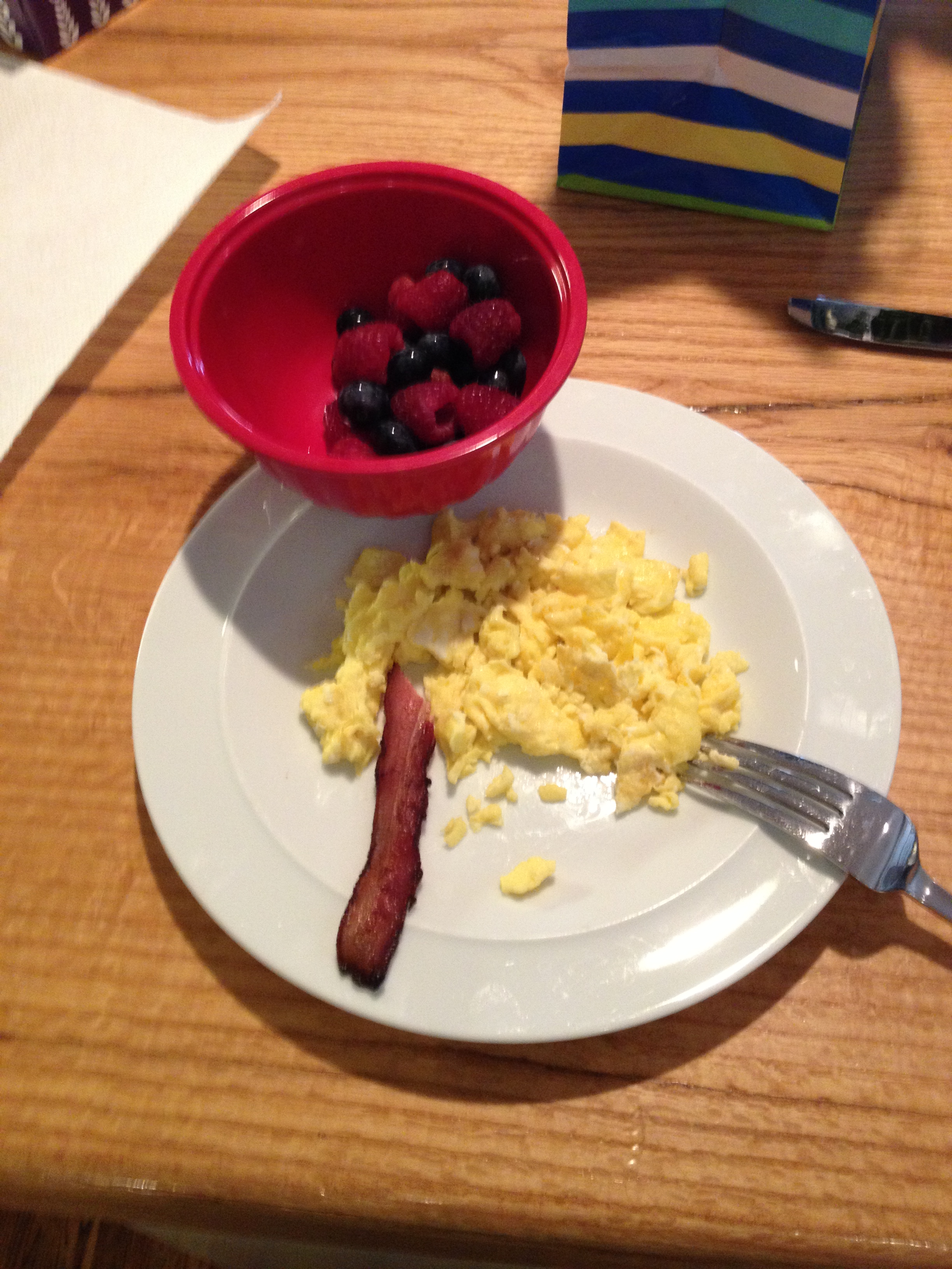 Bacon….just enough for each of us to have a taste….and, a few eggs. (Dang. I ran out of Organic Iced Tea a few days ago. And, Alix knows how to make it best. So, I have been running on just straight water for about 72 hours. Maybe that is what is making me a bit grumpy…tea is my only caffeine source after all. As you will surely remember, the only liquid that passes these lips other than wine is, in fact, water or Unsweetened Organic Iced Tea…..period. Ever. Except for my one Diet Coke per week that I drink during our Sunday Afternoon Cheat Meal. I suggest you think real hard about putting anything other than those 3 options up to your lips also. If you are still drinking beer, please allow me to once again remind you that its glycemic index is 10% higher than that of actual table sugar. That is right. Beer spikes your insulin levels higher than drinking liquified sugar! Does that sound good to you? It doesn’t to me. And, as such, I haven’t had a beer that I can remember since a bit before Christmas.) Anyhow, we all had some eggs and bacon and sent on about our special morning of doing basically nothing. Just us and our girls.